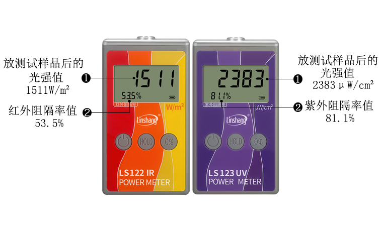 3. 紅外功率計和紫外功率計自動換算阻隔率,讀數(shù)簡單易懂。