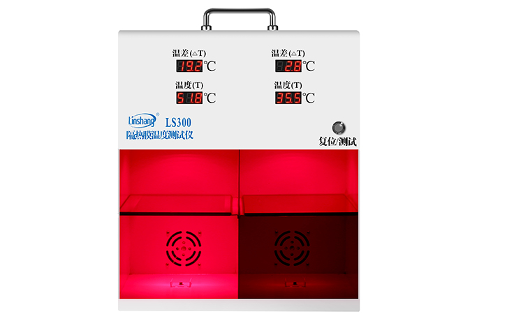 儀器尺寸: 340mm×200mm×400mm(L*W*H),外形高大上,操作簡便,可以讓客戶自己動手操作,及其適用于展廳跟客戶互動。儀器可以顯示實時溫度和放入材料后上升的溫度差,把手伸到儀器下方還能明顯感受到隔熱效果。直觀的數(shù)據(jù)和人體感知差異,加上與客戶的良好互動,還需要擔心自己說的口干舌燥客戶卻興致缺缺嗎?