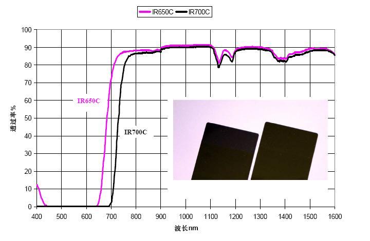??? 這種材料的特性在于在可見光范圍內(nèi)給予黑色視覺,但能透過800-1600nm以上波長的近紅外區(qū)域,紅外透過率根據(jù)部件的厚度、工作波段和顏色要求,可以從80%至93%不等。
