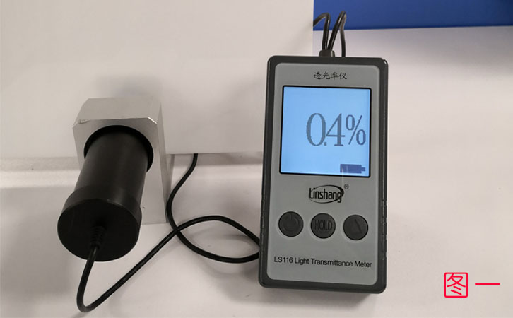 圖一是用高精度透光率儀LS116測量的乳白塑料的透光率為0.4% 。
