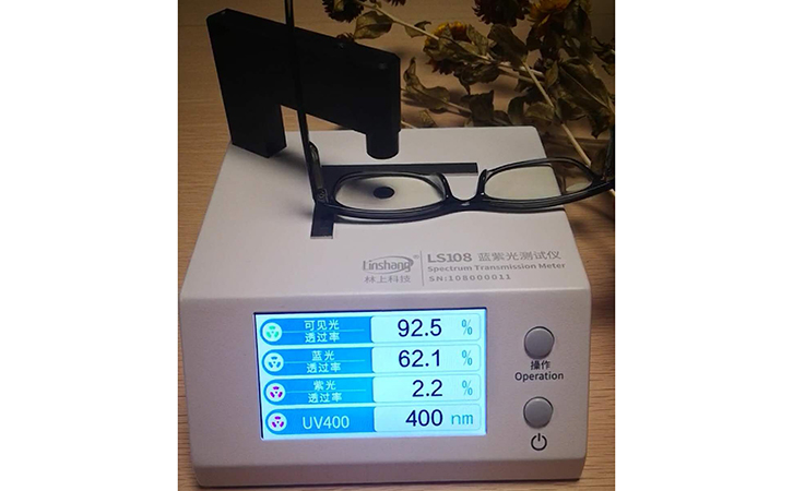 林上的LS108可以現(xiàn)場測試對比不同鏡片防藍光的差異,采用430nm的短波藍光,直接顯示測試樣品430nm的透過率,所測試的數(shù)據(jù)確保通過國家計量。