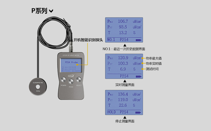其實,是應用的領域不一樣,P254探頭是應用在醫(yī)院用的殺菌燈,藥廠的傳遞窗檢測,疾控中心,化妝品的廠商也會用到。大功率,是一款用于UVC殺菌燈功率檢測的儀器。