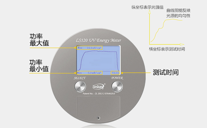 固化傳送帶速度快,光源強(qiáng)度時(shí)刻變化的。就要用采集速度快的UV能量表,LS128和LS120的采集速度都是每秒鐘采集2048次,速度非???,這可以讓能量累積值更加的準(zhǔn)確。還能看到固化過程中的功率曲線圖,就是紫外強(qiáng)度在固化過程中的分布狀況。而且UV能量表的精度在優(yōu)于±10%之間。